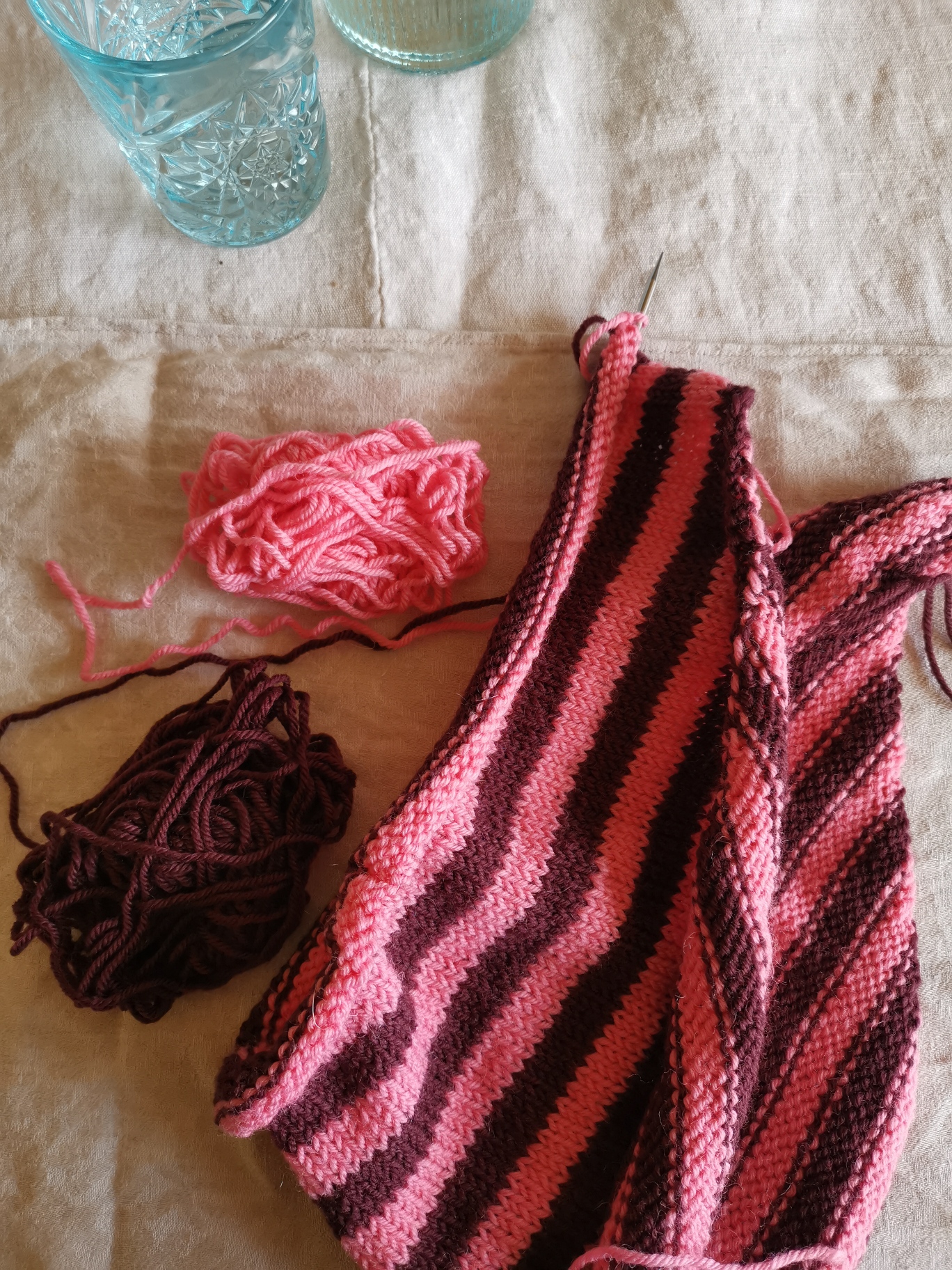 Das Schönste ist ja doch, dass wir beim gemeinsamen Stricken nicht nur Wolle in ein Kleidungsstück verwandeln, sondern dabei auch bleibende Erinnerungen schaffen. Wir sitzen beisammen, plaudern über dies und das und freuen uns gemeinsam über jeden Maschenfortschritt. Und wenn ein winziger Haubenschiefstrick oder ein quietschbunter Schal entsteht, ist die Freude umso größer – ganz egal, wie perfekt oder unperfekt das Teil am Ende aussieht.