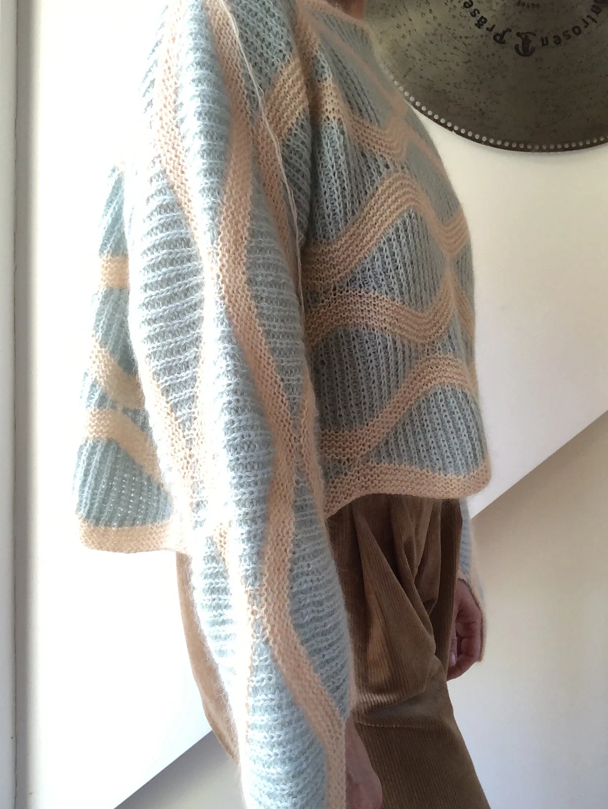 ChrisBerlin zum Design: “Die Idee zu diesem Pullover kam mir nach der Veröffentlichung von „Isola Bella“. Es folgte eine sehr experimentelle Phase, aber dann nahm das Projekt Fahrt auf und wurde durch die wunderschönen Arbeiten der Teststrickerinnen bestätigt. Ich bin sehr dankbar und freue mich riesig, wenn euch der „Kosho“ genauso gut gefällt wie mir und meinem Testteam.”