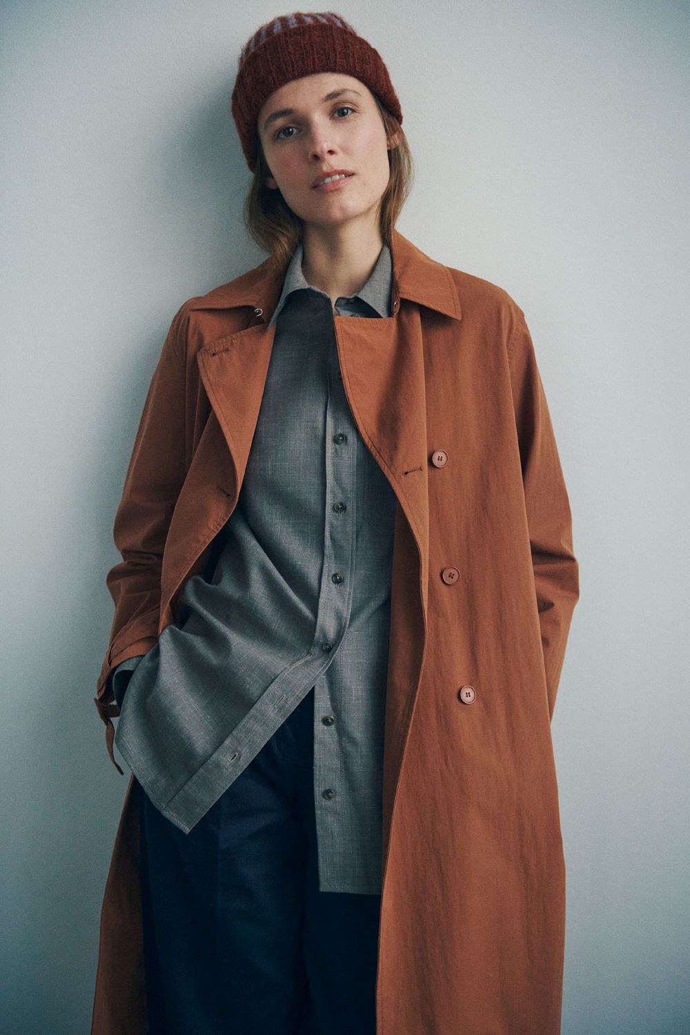 “Anni Beanie ist eine klassische Mütze mit einer unkonventionellen Farbkomposition. Die Mütze hat eine breite Rippenstulpe und die vertikalen Streifen werden mit Jaqcuard -Stricken hergestellt. “
