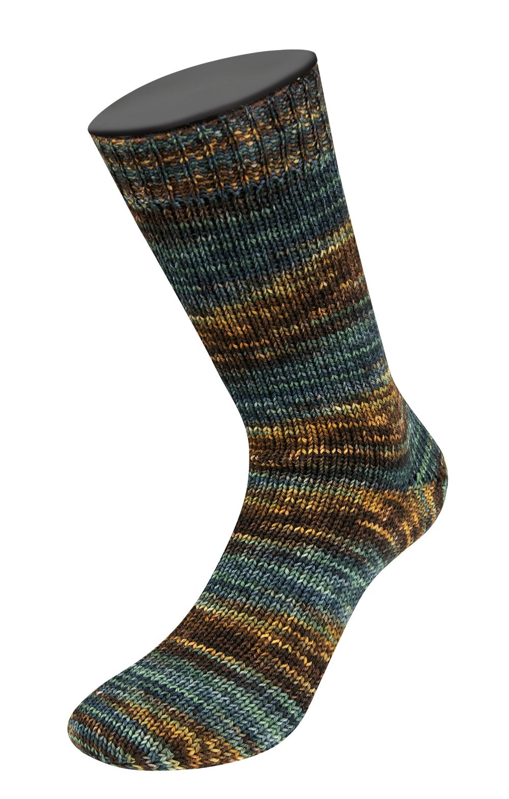 Lana Grossa Meilenweit Sooty 100g überzeugt mit harmonischen Farbverläufen und bewährter Sockengarnqualität. Das 4-fädige Garn aus Schurwolle Merino und Polyamid ist ideal für individuelle Socken mit fließenden Farbübergängen.