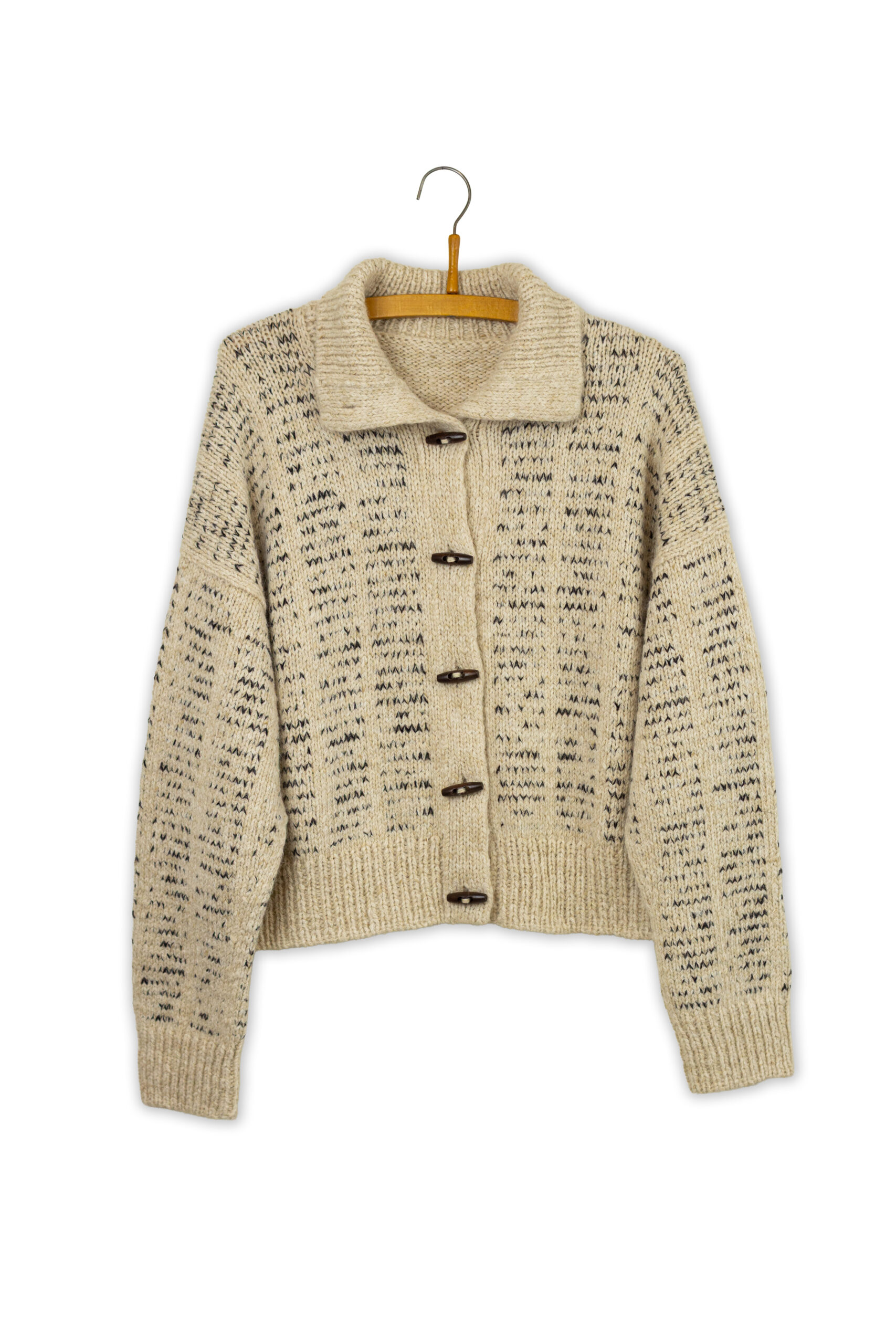 Die Ava Jacke ist eine übergroß geschnittene Jacke mit Details im Musterstrick, inspiriert von Marianne Isagers Design Avis (= Zeitung), das ursprünglich in den 1980’er Jahren veröffentlicht wurde. Die Passform zeigt deutliche Referenzen zu den charakteristischen Silhouetten des Jahrhunderts.