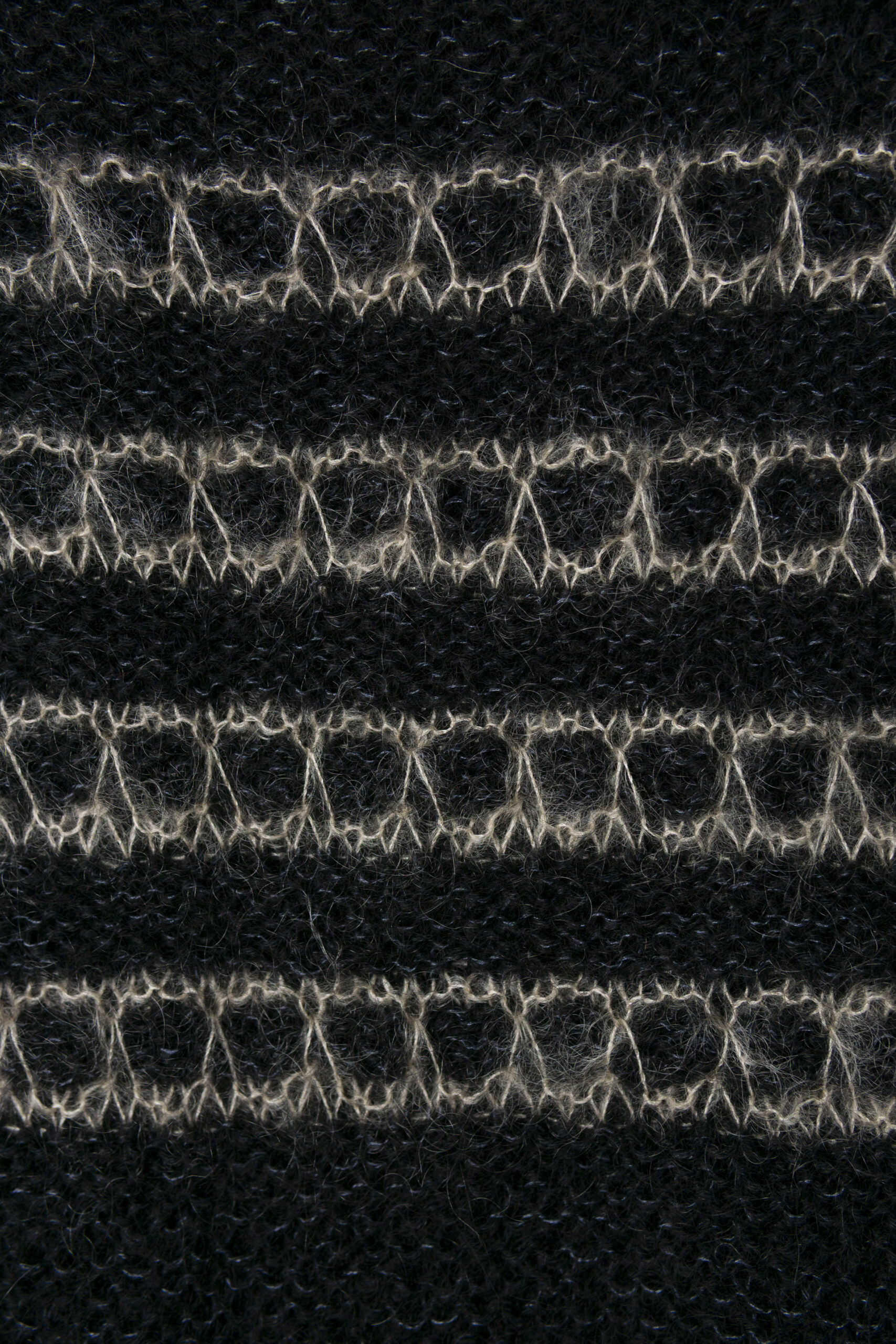 jeweils gemeinsam mit 150 (150) 175 (175) 175 (200) 225 (225) 250 g Silk Mohair von Isager Yarn (212 m/25 g)