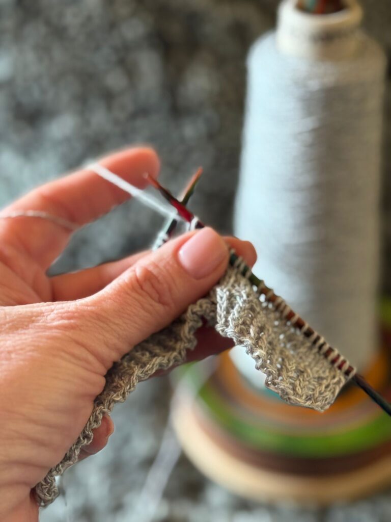 Nach ihrer Chemotherapie, die zum Glück schon ein paar Jahre zurückliegt, ist sie relativ plötzlich in die Wechseljahre gekommen und hat ihren Körper noch einmal ganz neu kennengelernt. Vor allem dieses Gefühl, dass einem einfach oft warm ist, hat sie dazu gebracht, sich intensiver mit leichten, atmungsaktiven Strickteilen zu beschäftigen.